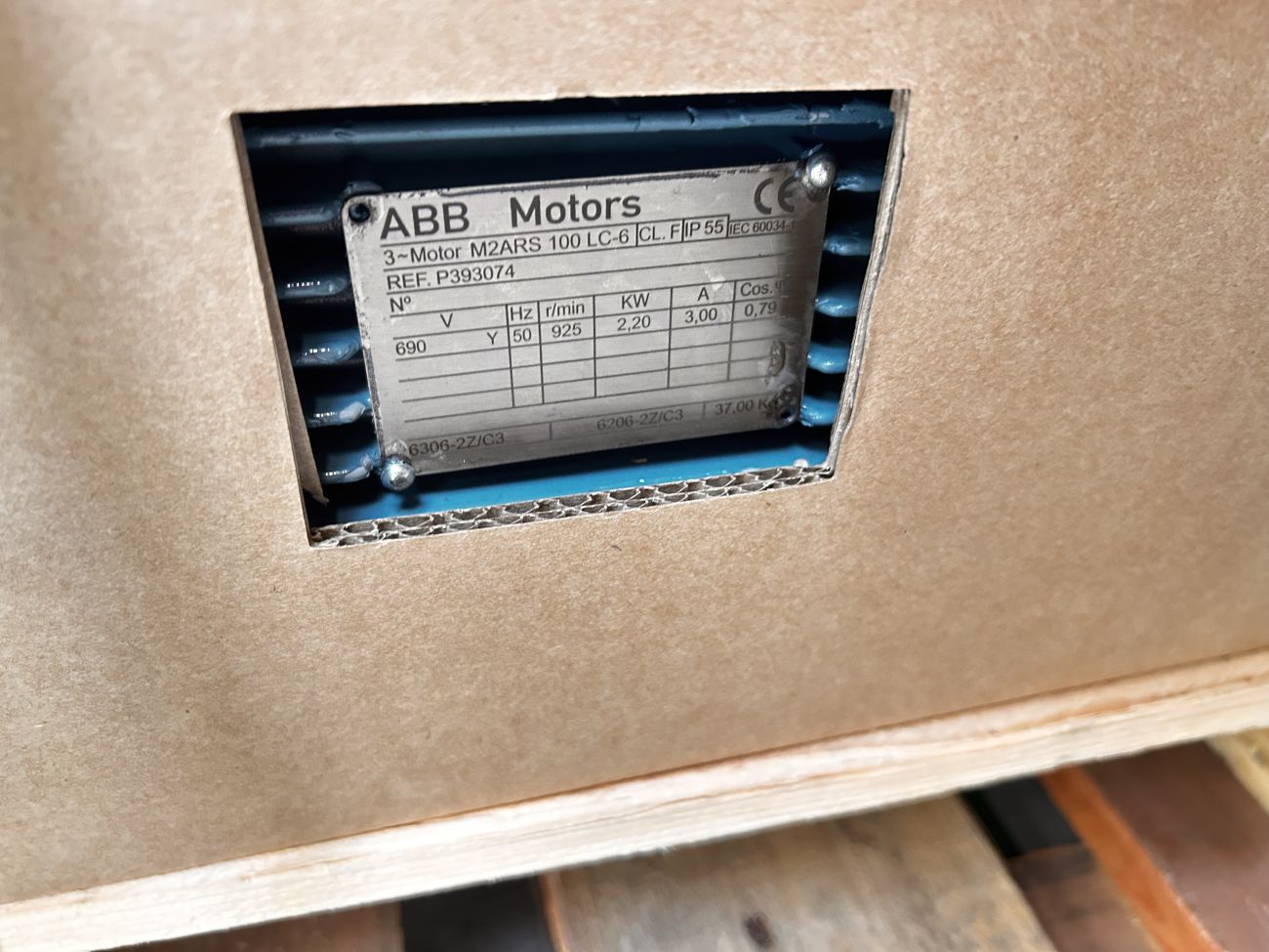 Descrição: Motor M2ARS100LC-6, 2,2 kW, 690 V, 925 rpm, 50 Hz