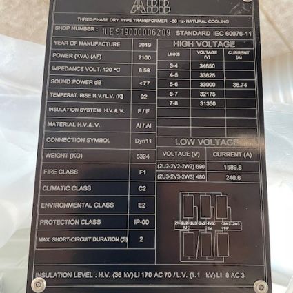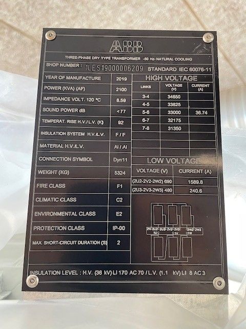 TRAFO 2100kVA 50Hz ¤ 33KV
