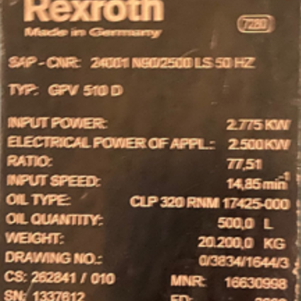 Câmbio / trem de força para Nordex N90 BETA | Nordex Rexroth GPV 510 D