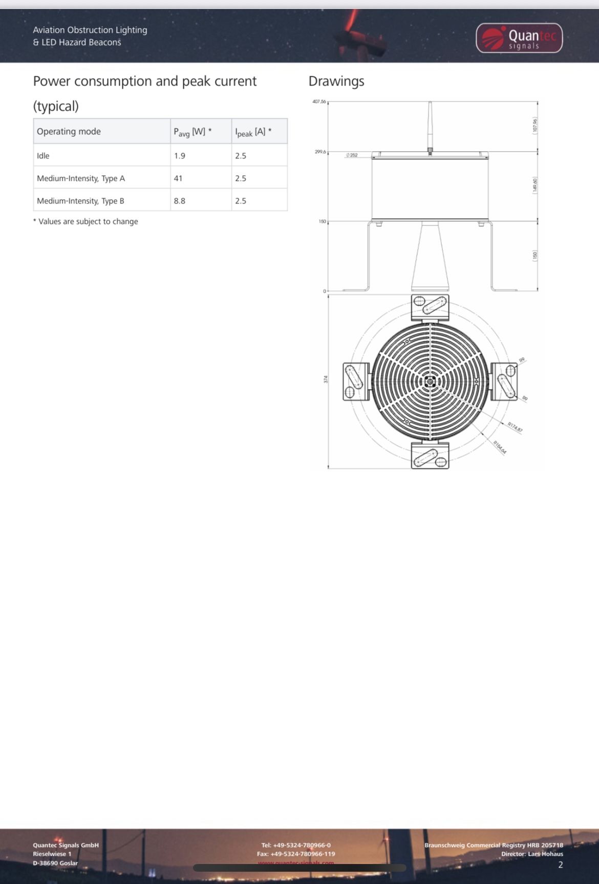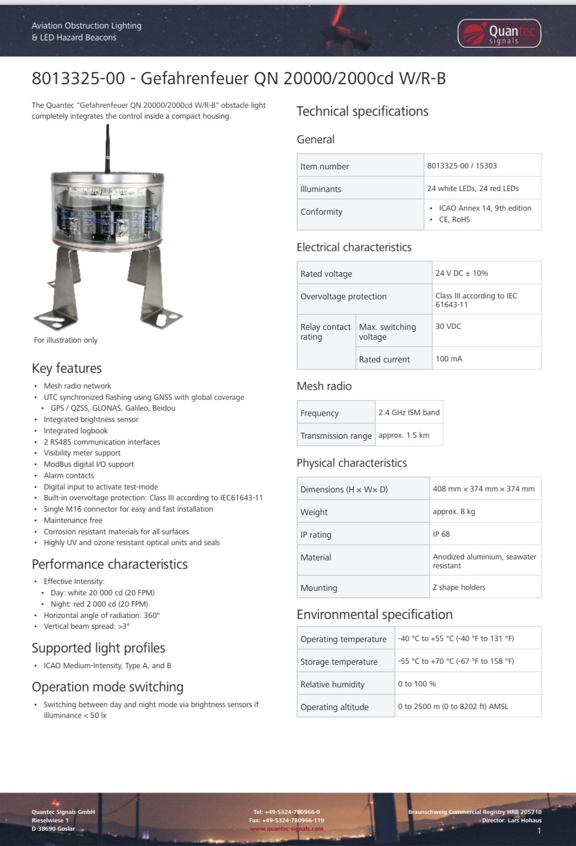 Consulte a folha de dados da Quantec para obter as especificações